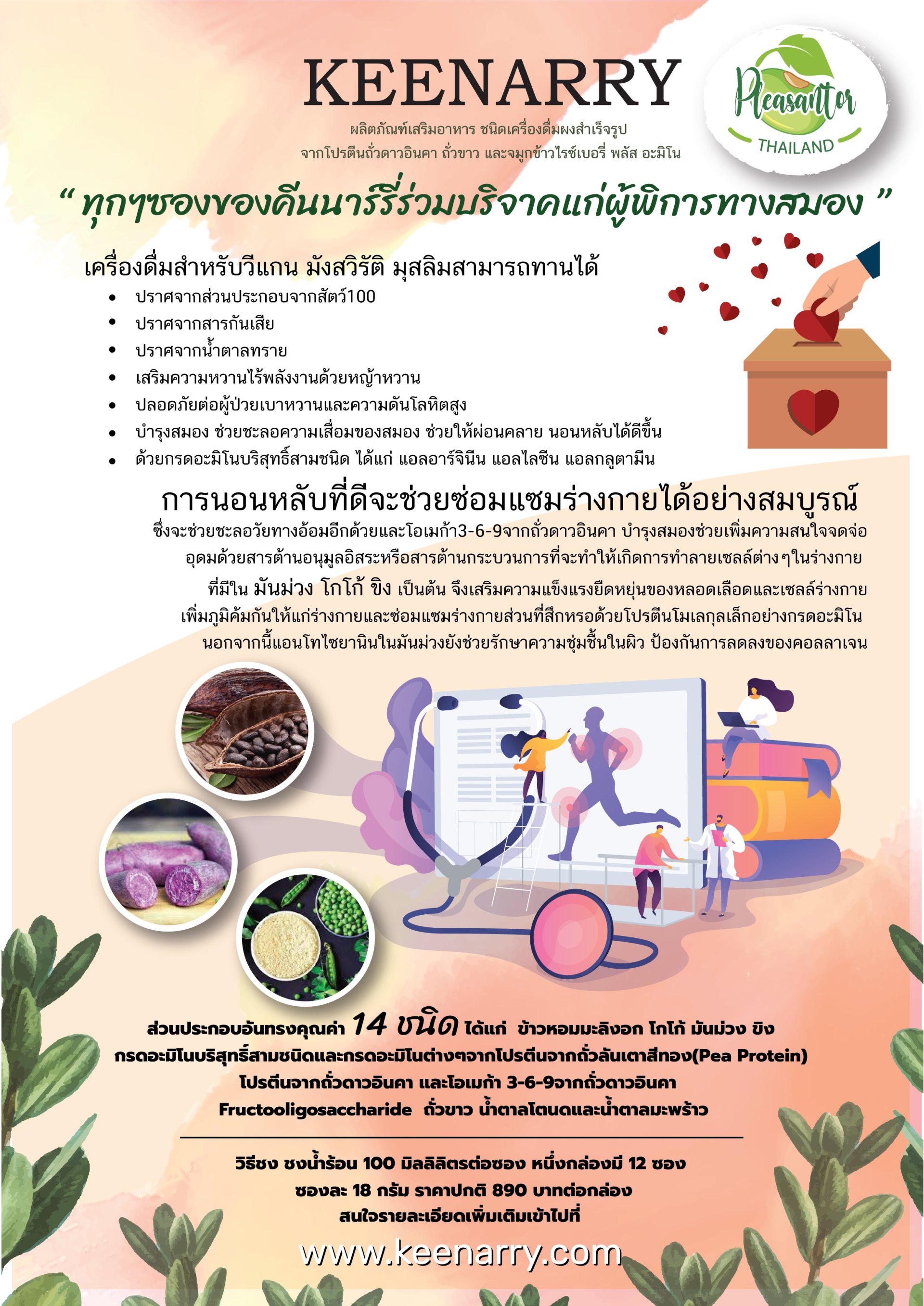 เครื่องดื่มบำรุงสมอง เครื่องดื่มบำรุงร่างกาย เครื่องดื่มโปรตีนเสริมภูมิต้านทาน สำหรับวีแกน ร้าน Pleasantor Thailand